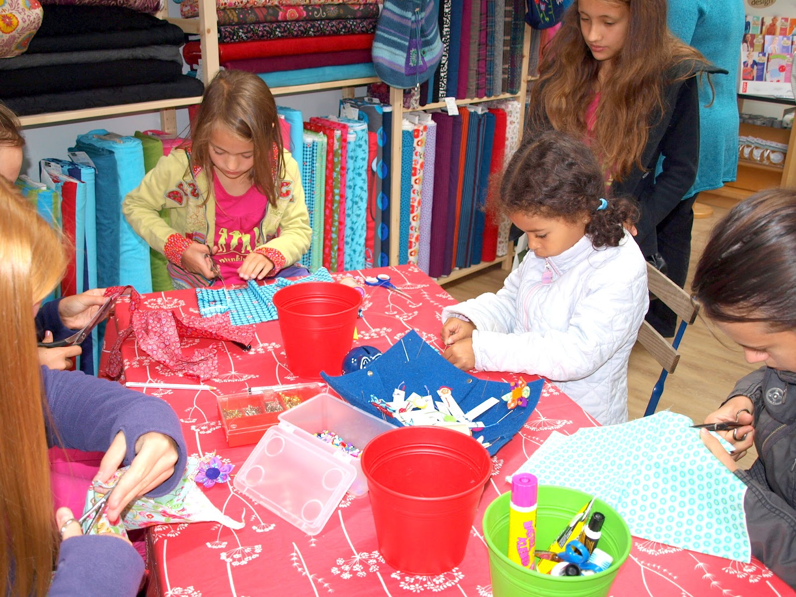 Damit sich groß und klein auch ein bisserl kreativ ausprobieren kann, hat Renate mondbresal einen  Blumennähtisch eingerichtet. Das kam wirklich sehr gut an.